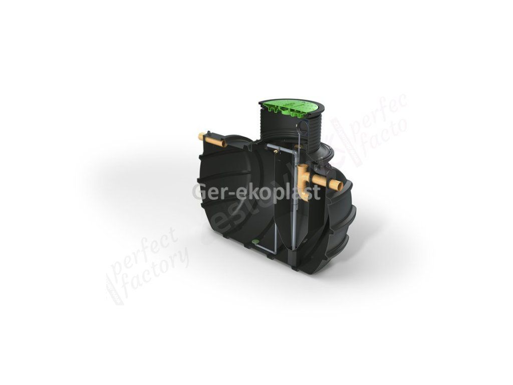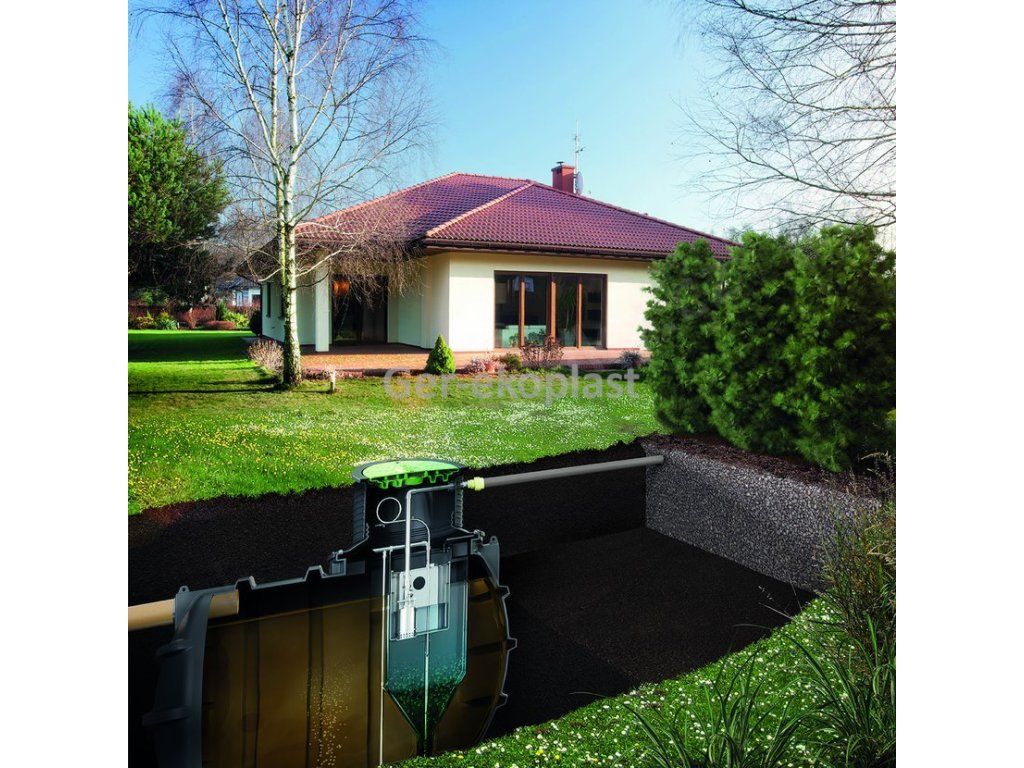 Nádrž čistírny je vyrobena z polyethylenu metodou rotomouldingu - velmi odolný materiál odolný vůči velmi agresivnímu prostředí - 20letá záruka na těsnost nádrže. Spolehlivá konstrukce bez elektroniky, časovače solenoidových ventilů zaručuje klid po mnoho let používání. Nízký profil umožňuje snadnou instalaci v oblastech s vysokou hladinou podzemní vody . Hloubku vstupu odpadní vody lze standardně nastavit v rozmezí 50-80 cm - instaluje se teleskopický prodlužovací prvek . Pro hlubší vtok – až do 150 cm – lze použít dodatečný prodlužovací prvek (z PE, výška 50 cm).